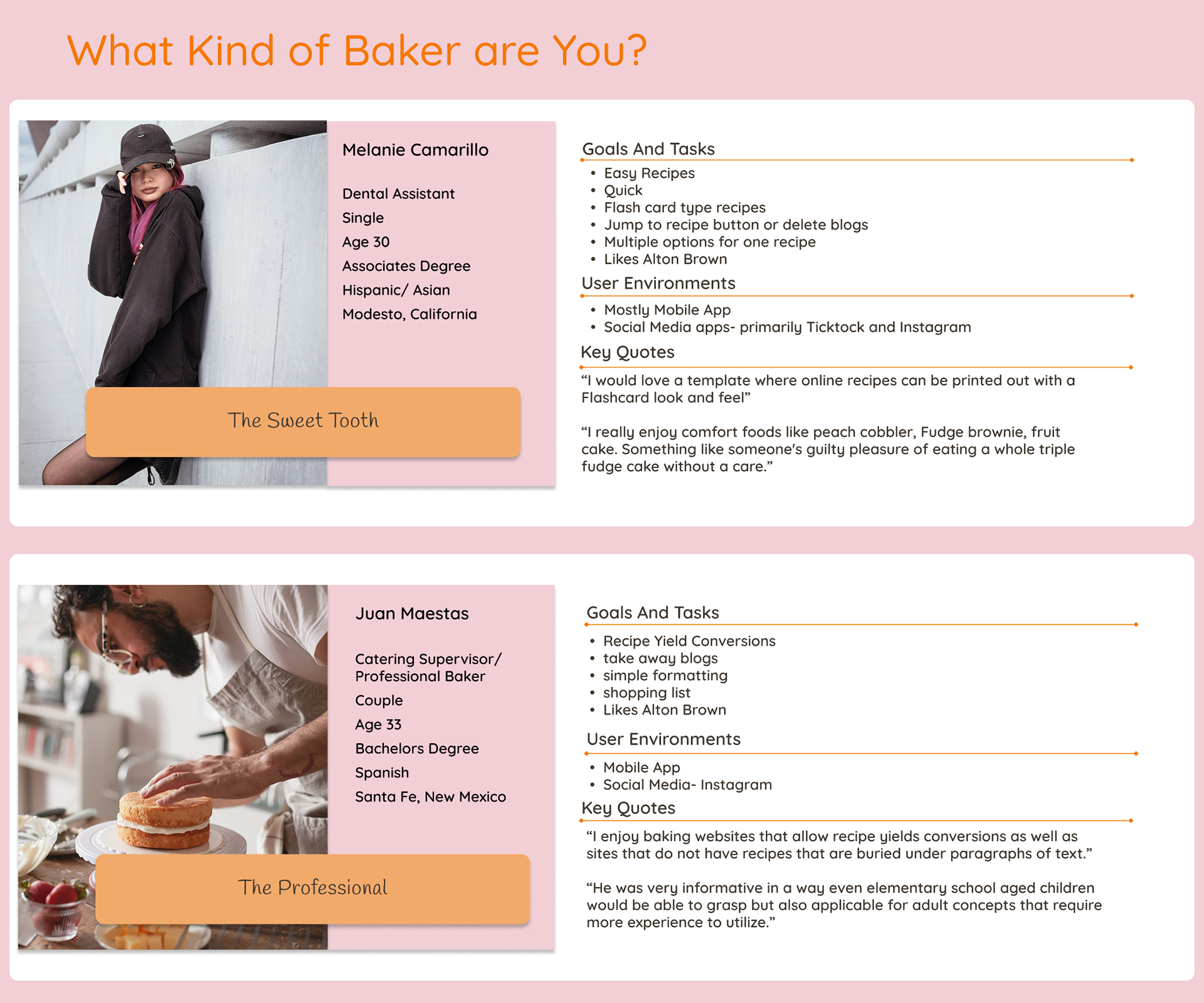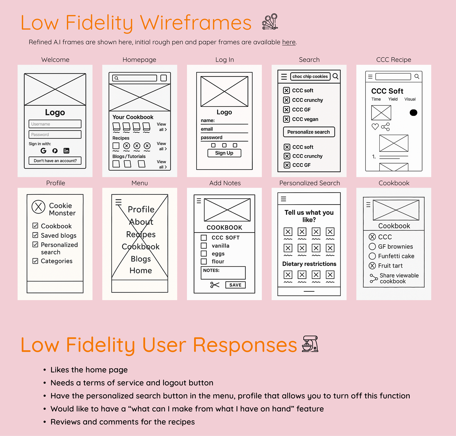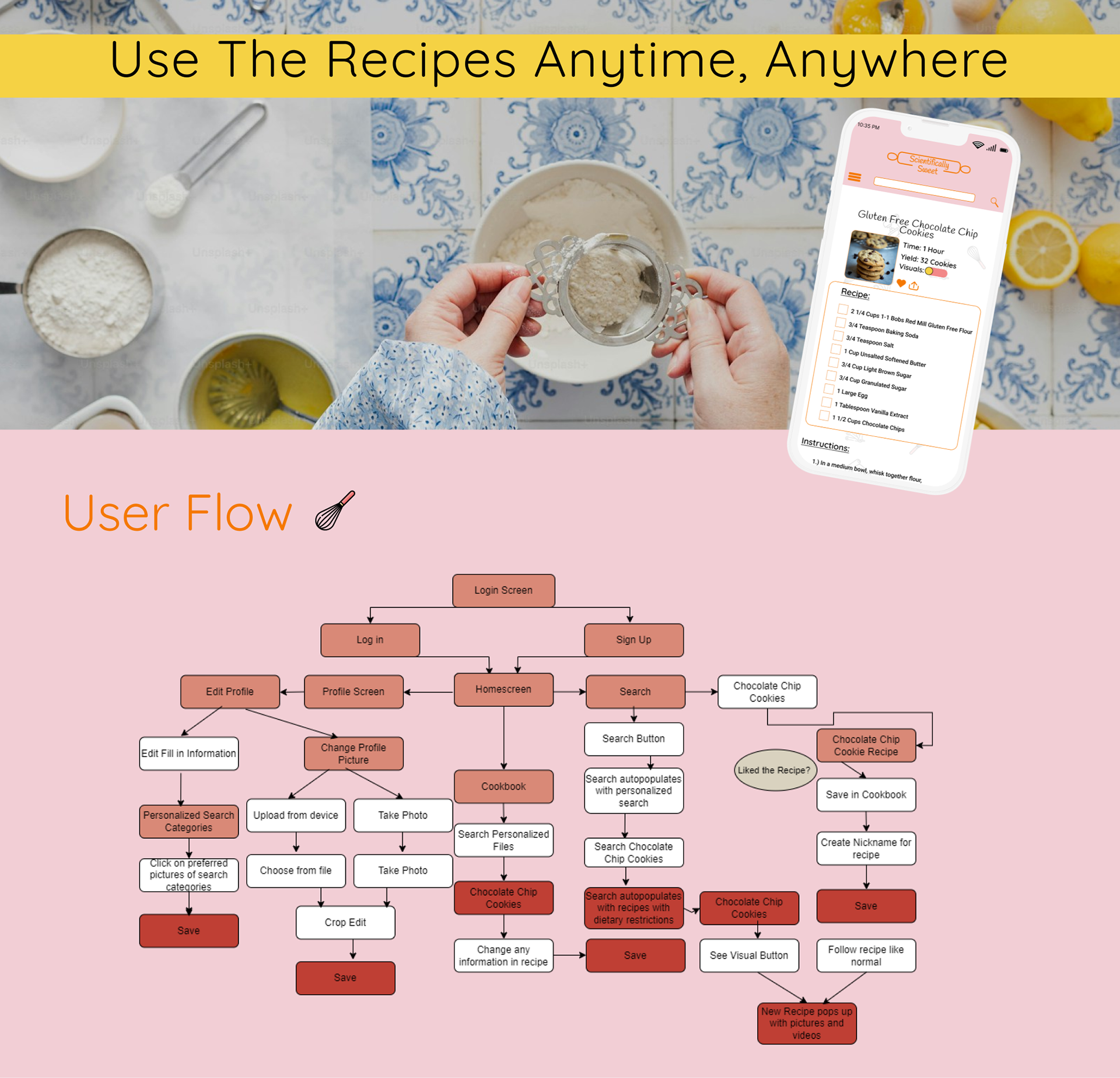 Scientifically Sweet is a responsive web app that empowers users to discover, customize, and save baking recipes through an intuitive and playful interface. I applied user research, low and high fidelity wire framing, preference testing, and responsive UI design using Figma to craft a user-centric baking experience.